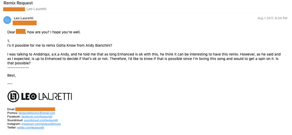 In addition, if you want to do a remix for the label because you want to get inside the label, you can also shoot them an email asking for opportunities within the label. If that’s your case, I would send an email saying: